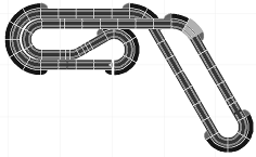 Aktuelle Bahn, ohne Steilwandkurve, Leitplanken und Überfahrt. Länge 16,77m |